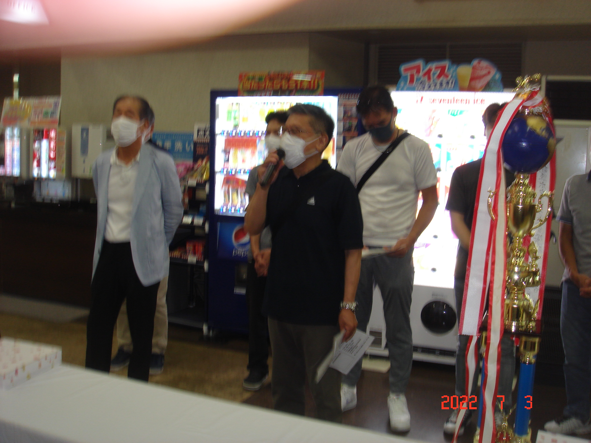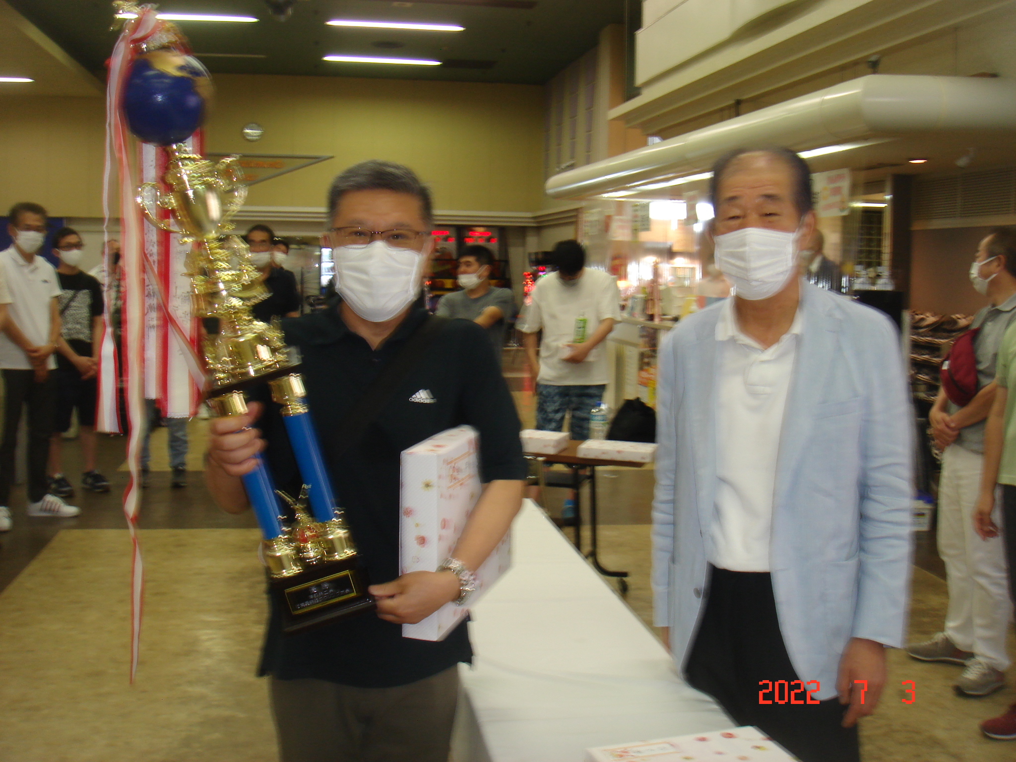 栄冠に輝いたのは㈲佐藤商事の佐藤紀一郎社長で、日ごろの練習の成果を発揮して優勝しました。“佐藤さんおめでとうございます。”