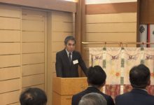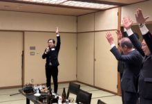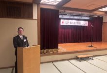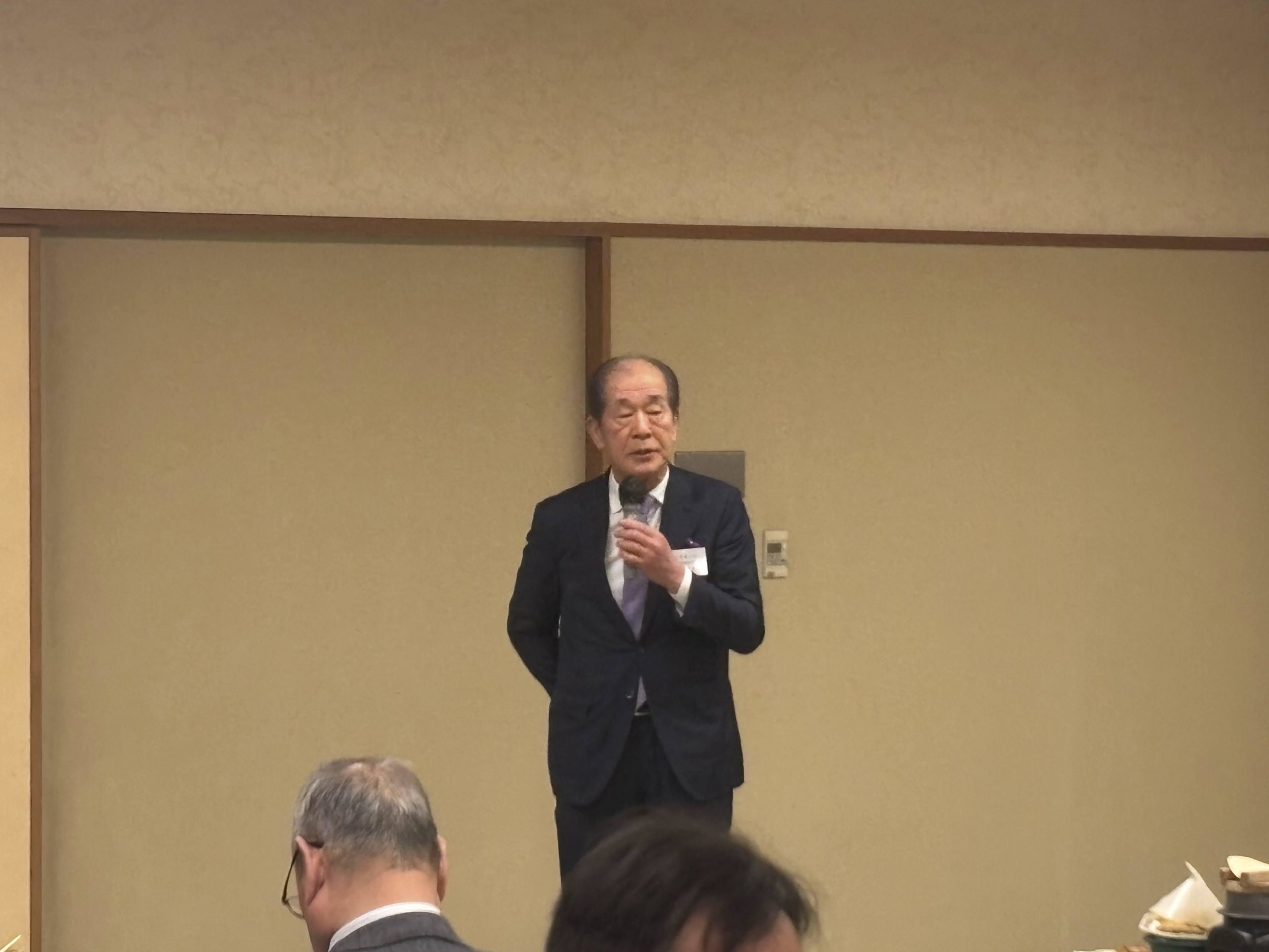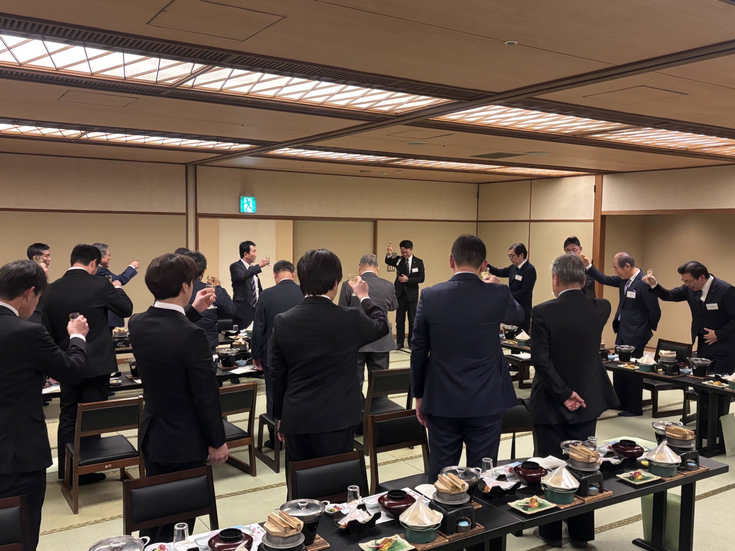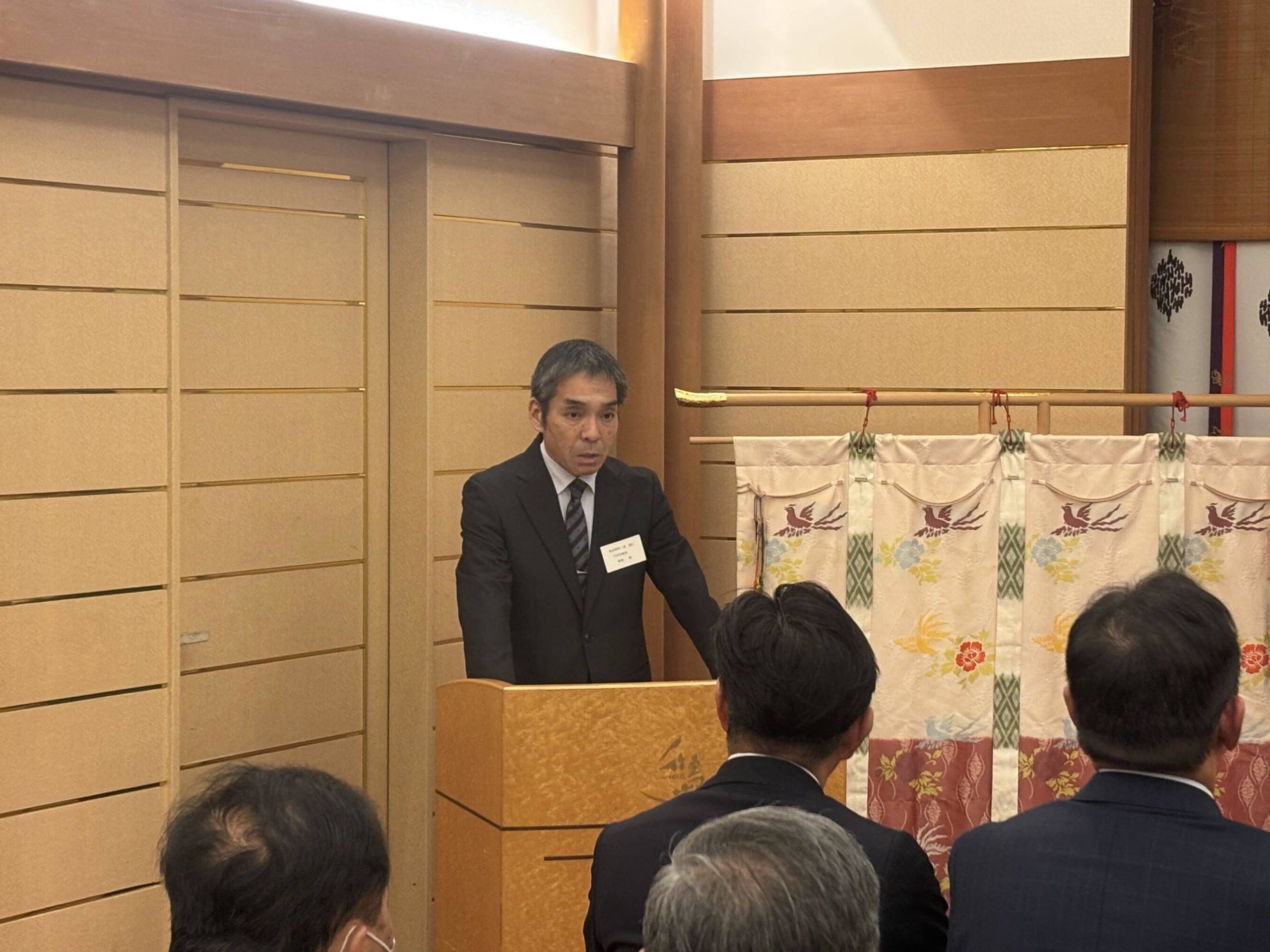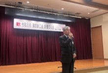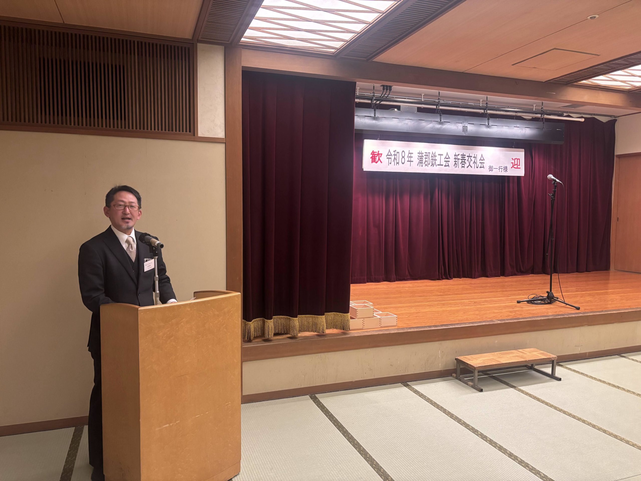 その後の新春交礼会は、懇親会会場の「松風」に移動し、主催者を代表して近藤昌泰蒲郡鉄工会長(蒲郡商工会議所製造部会会長)の挨拶があり、会員には常に‟チャレンジ精神”を持ち続けることの必要性を語られました。続いて来賓を代表して贄蒲郡副市長、喚田愛知県議会議員の挨拶がありました。
