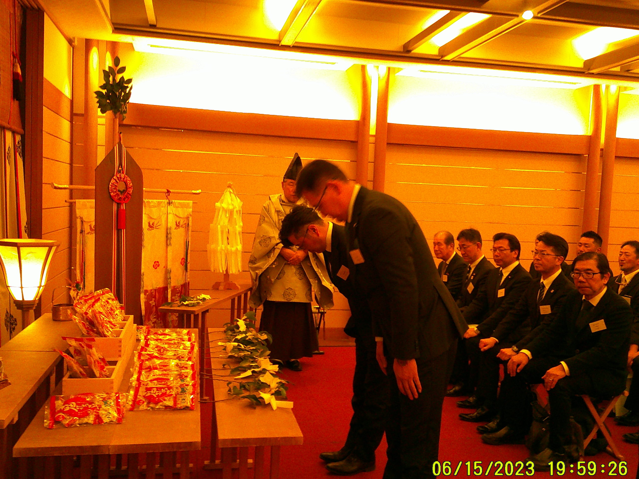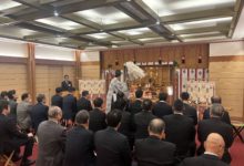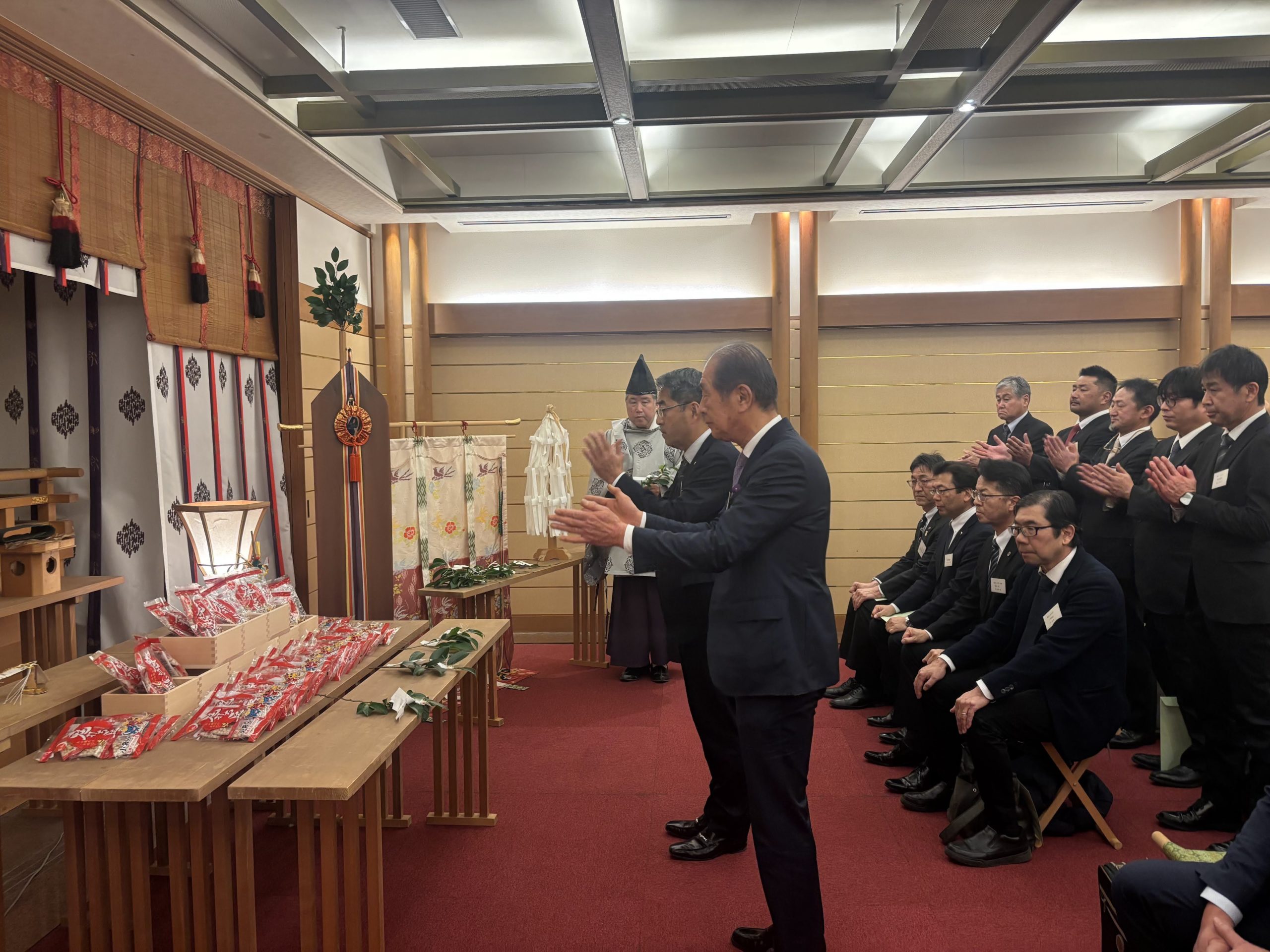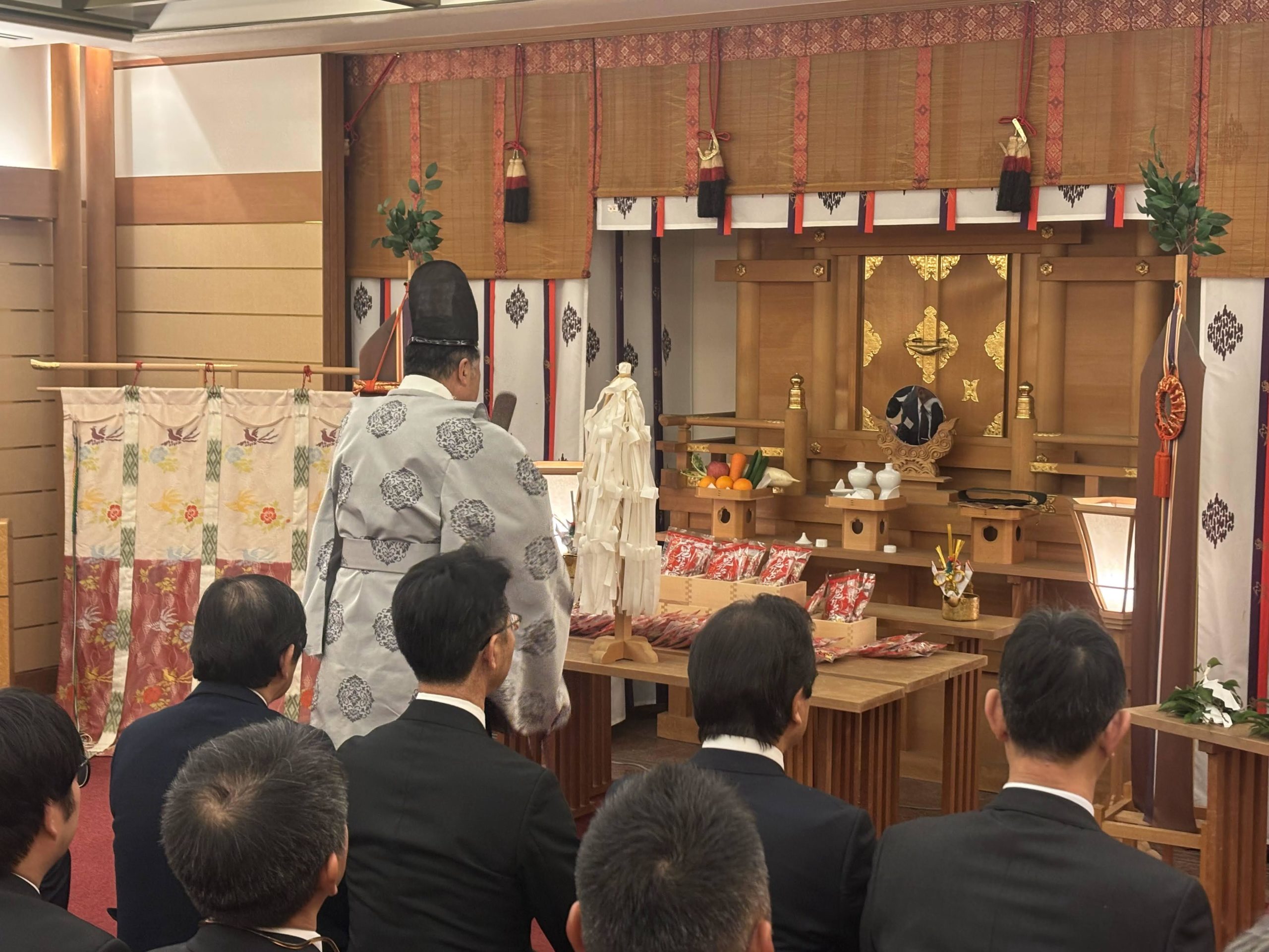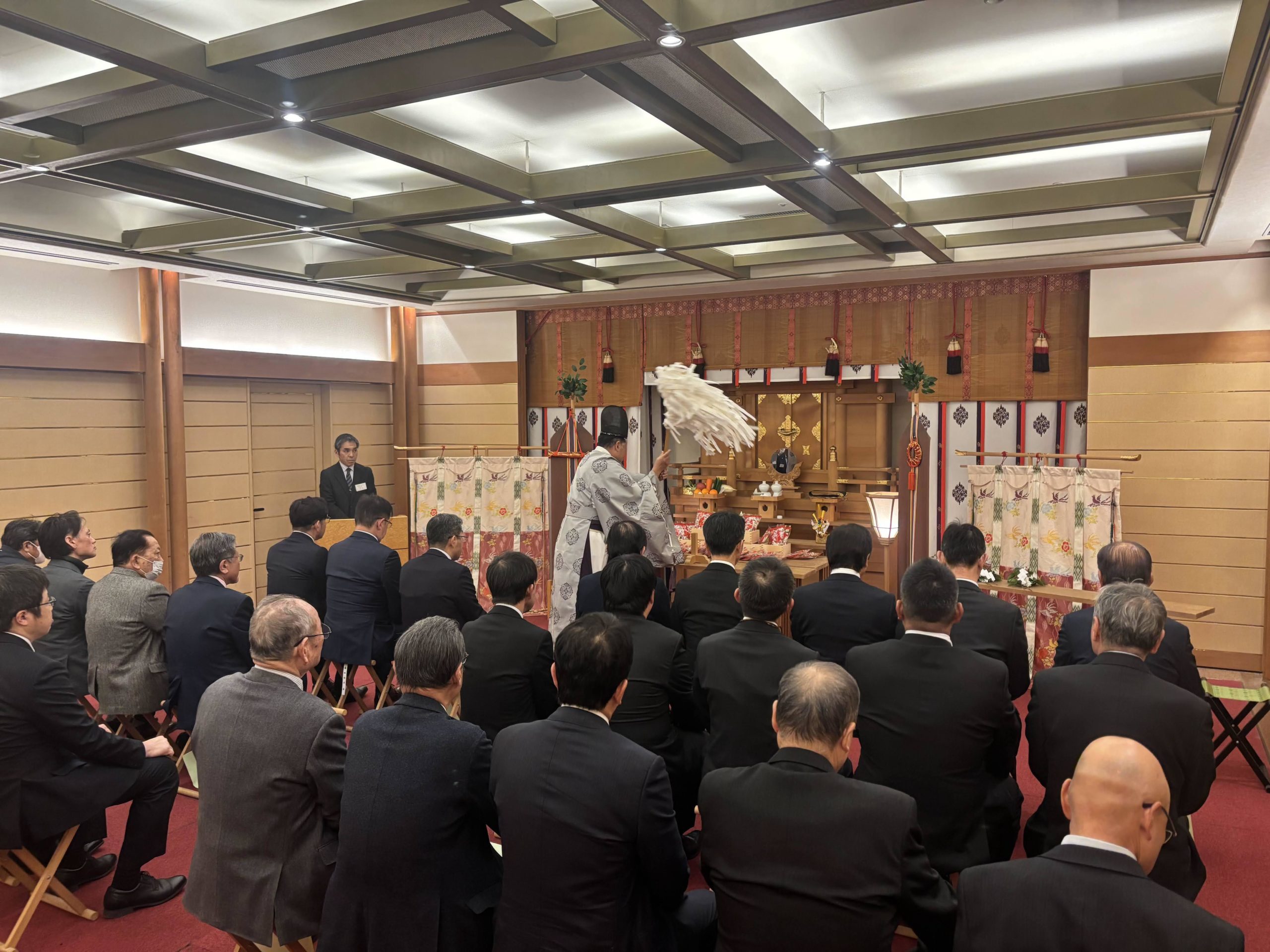 当日の参加者は来賓を含め30名で、節分会の神事は、2階の「高砂」で大宮神社の榎本宮司様により午年の4名の年男を含めて厳かに執り行われました。