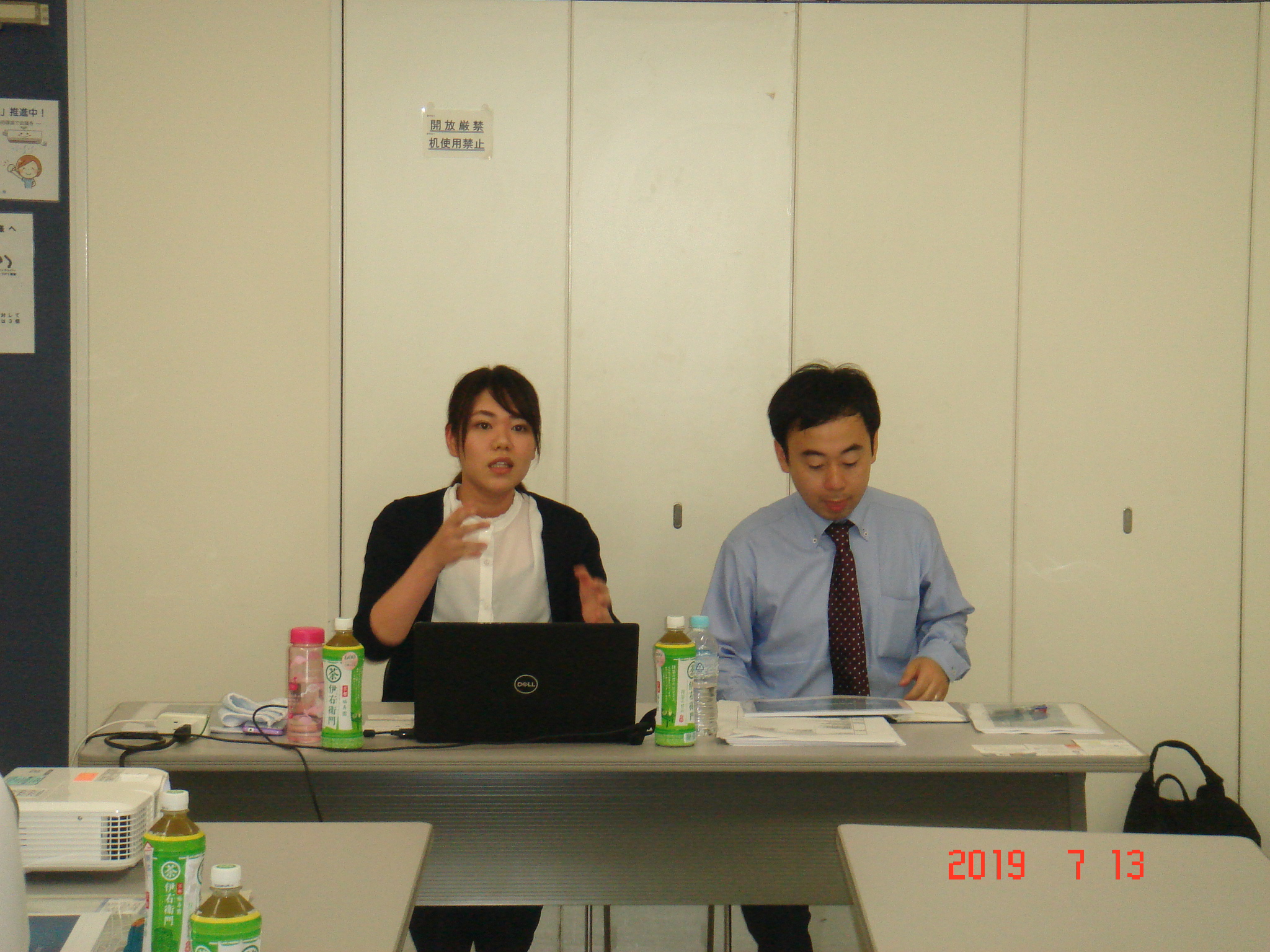 当日は、水野大知会長(㈱豊鉄工所)の挨拶後、愛知商工連盟協同組合の花澤健太氏と鈴木まや氏の両講師を迎えて、『外国人技能実習生について』をテーマに勉強会を行いました。